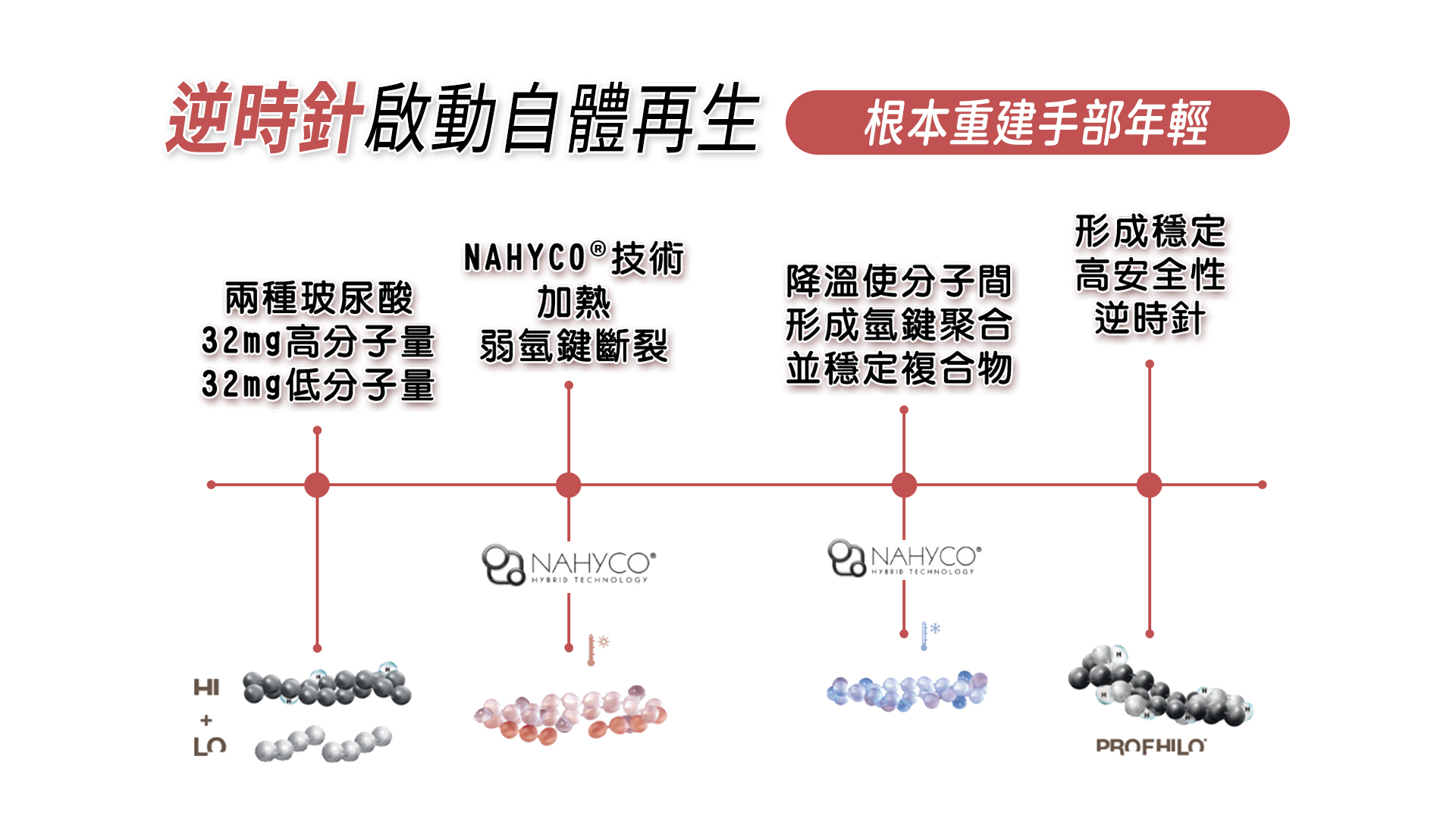 逆時針是一種生物相容性高的膠原蛋白增生劑。將其精準注入於手背真皮深層及皮下組織後,會透過以下機制發揮作用: