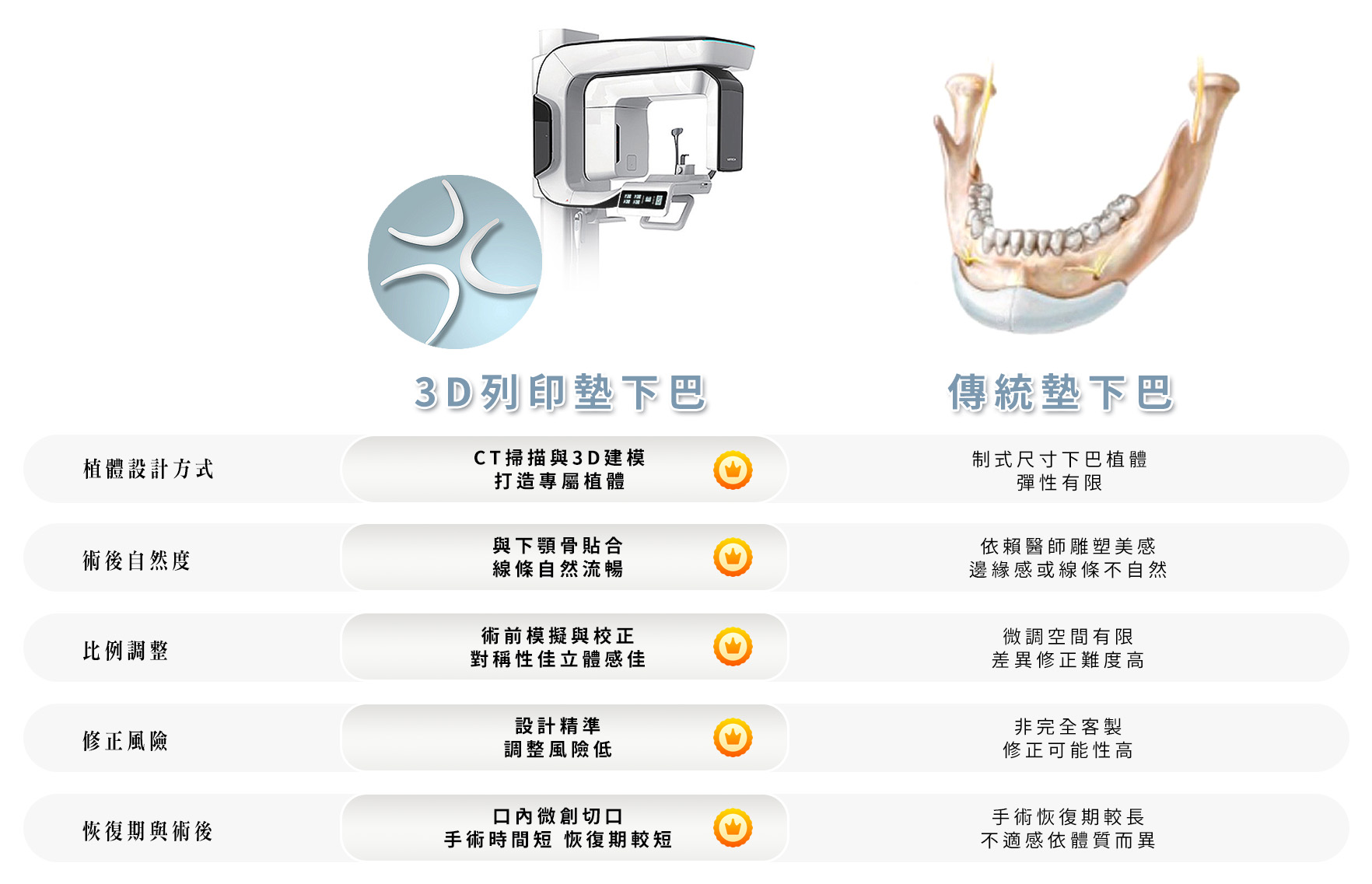 傳統墊下巴與 3D 列印墊下巴手術差異說明