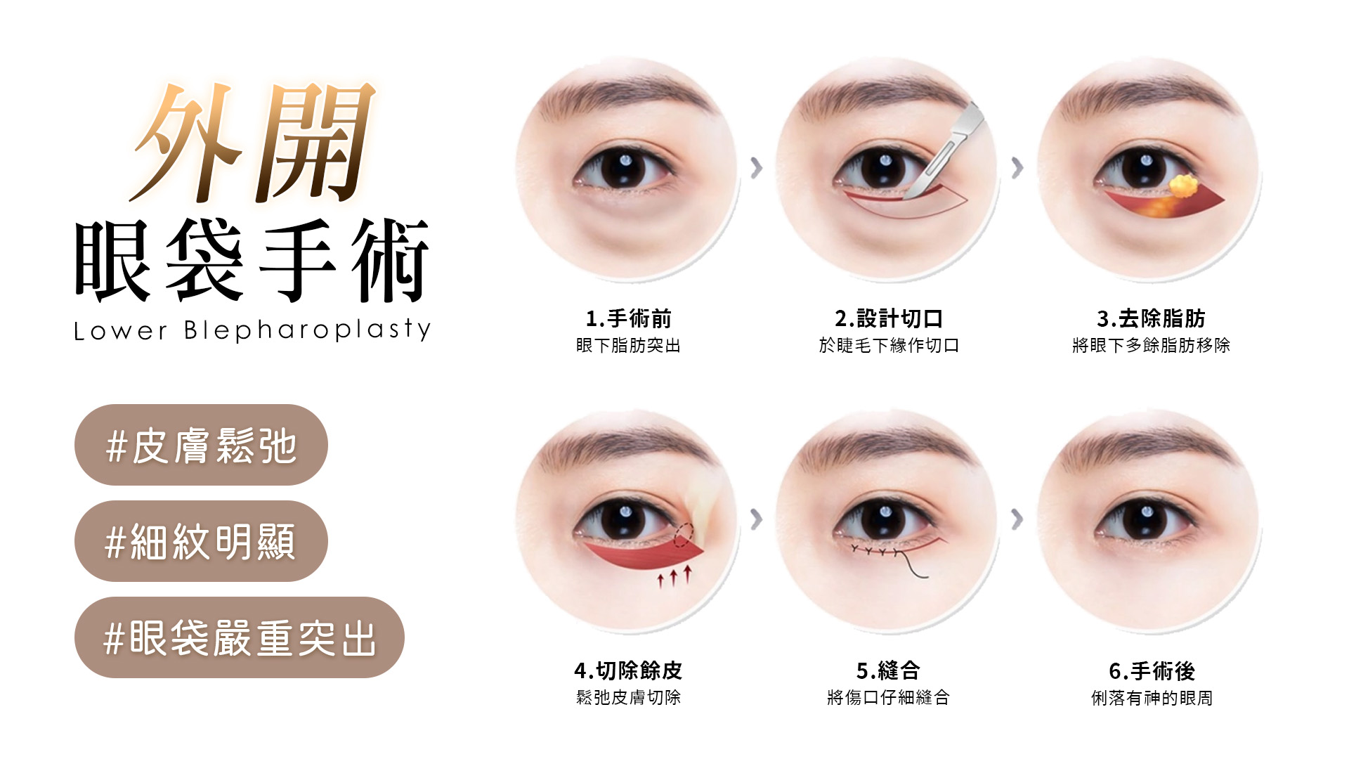 眼袋外開手術(睫毛下緣切口)
