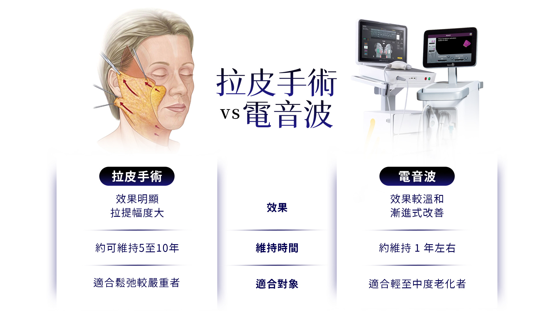 相較電音波、埋線等非侵入式療程,拉皮手術效果更明顯、維持時間更長(約5~10年),因此成為近年醫美市場熱門關鍵療程之一。