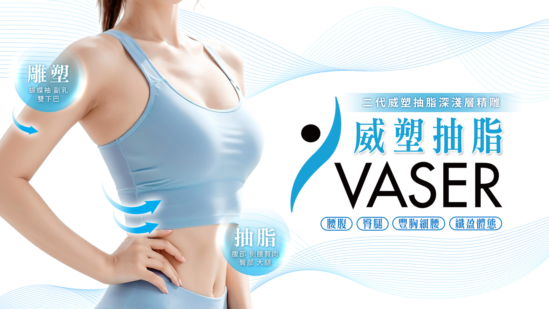 二代 VASER® 威塑 2.2 為目前市面上具備高度「脂肪選擇性」的先進抽脂技術。可同時處理深層脂肪移除與淺層線條雕塑,達到「深抽脂、淺精雕」的體雕效果,使身體曲線更緊實、比例更立體。