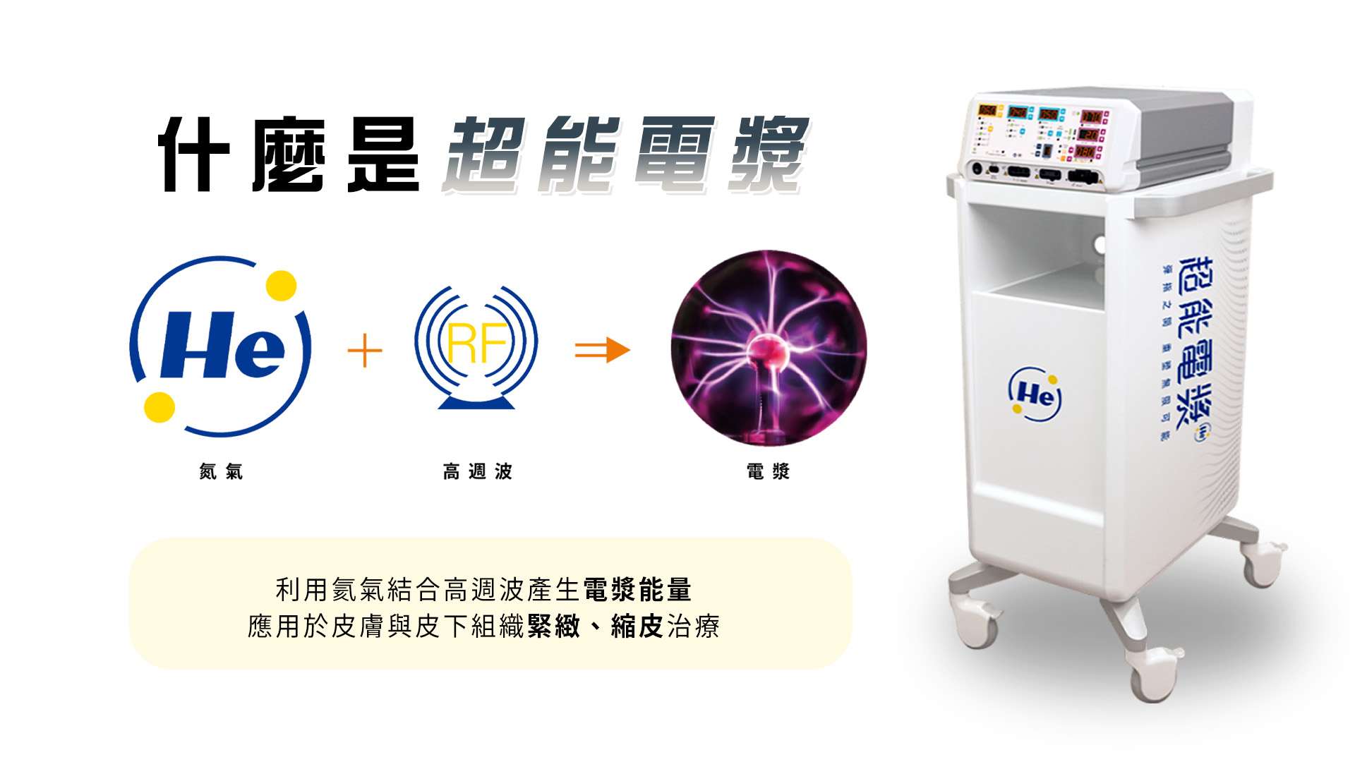 超能電漿(Renuvion®,Apyx Medical 氦氣電漿系統)是一種利用氦氣結合高頻電能產生電漿能量的醫療儀器,主要應用於皮膚與皮下組織緊緻、縮皮治療。