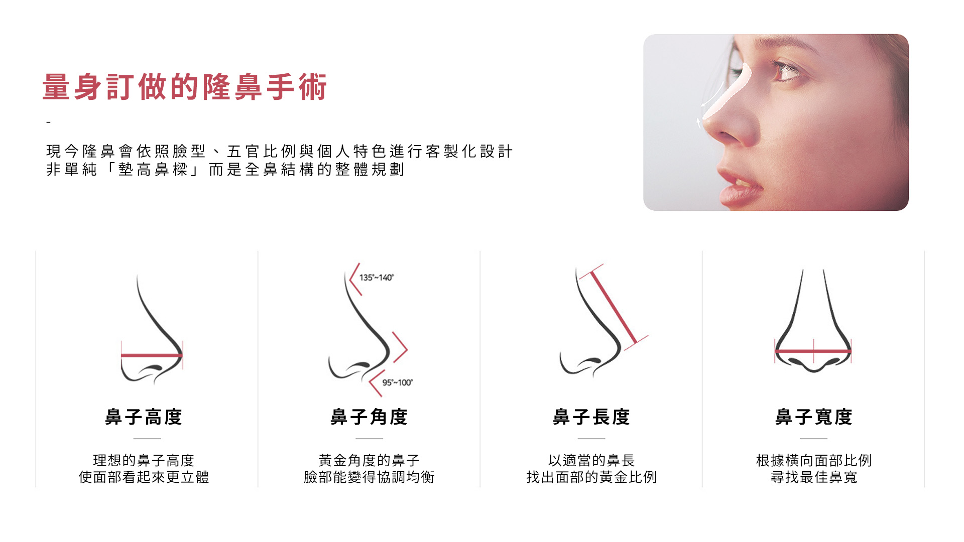 現代隆鼻已不再追求單一「高挺模板」,而是強調 依照臉型、五官比例與個人特色進行客製化設計。唯有五官整體協調,才能真正讓隆鼻成為「加分」,而非突兀的改變。